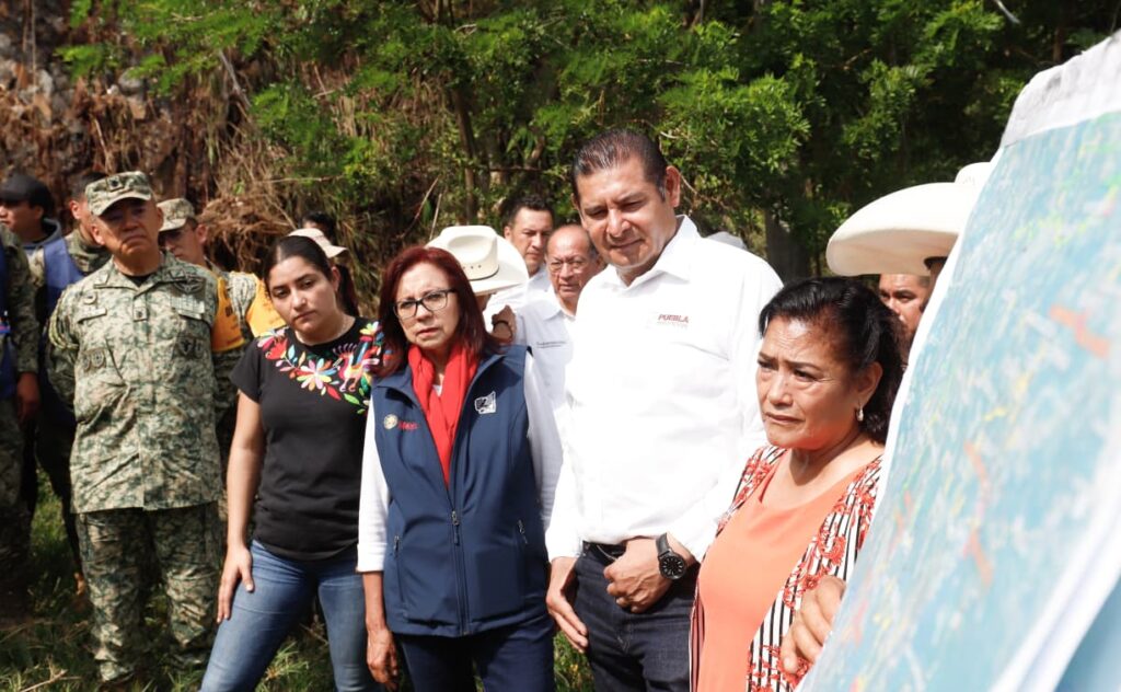 TLACUILOTEPEC, Pue. – El gobernador de Puebla, Alejandro Armenta, visitó uno de los municipios más afectados por las intensas lluvias en la Sierra Norte, acompañado por la coordinadora general de Asuntos Intergubernamentales y Participación Social del Gobierno de México, Leticia Ramírez Amaya, supervisó los daños en infraestructura, especialmente en el Puente San Marcos, que fue arrasado por la creciente del río y cuya ausencia ha interrumpido la comunicación terrestre con Xicotepec.