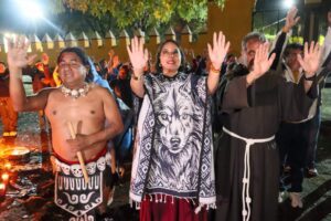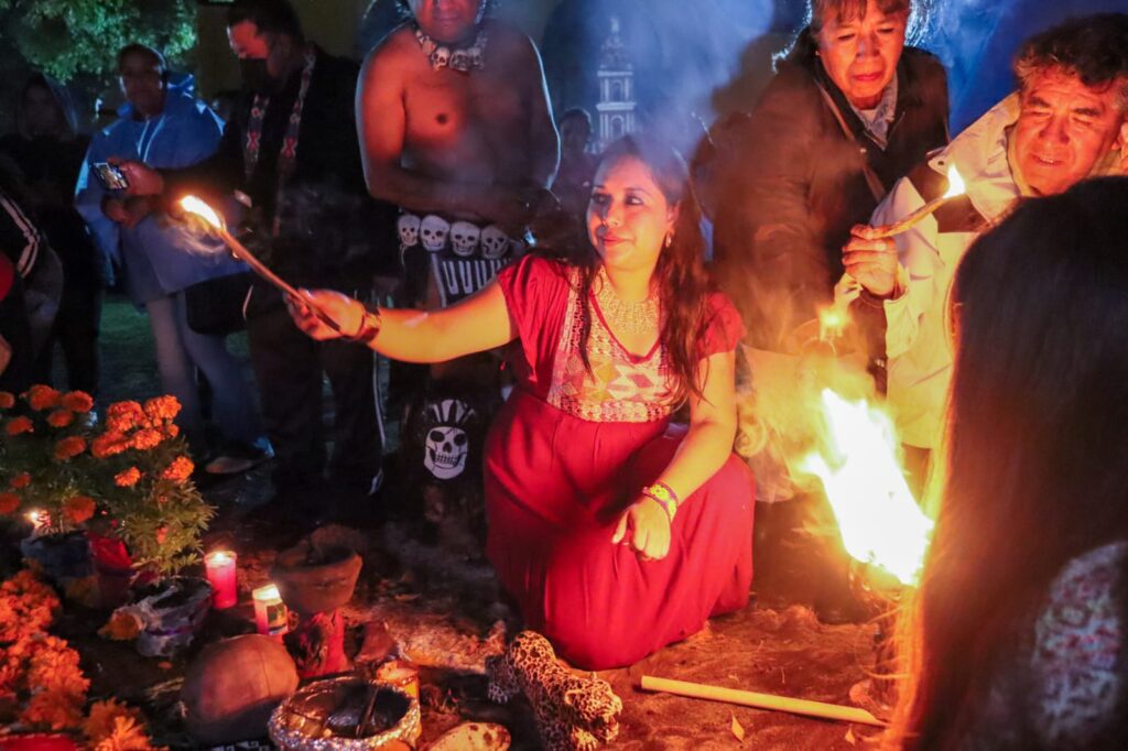 Posteriormente, acompañada por danzantes tradicionales, la edil se trasladó al Convento de San Gabriel Arcángel, donde se realizó una ofrenda floral en memoria de las víctimas de aquel suceso ocurrido hace más de cinco siglos.