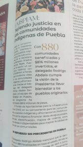 El segundo artículo periodístico de “Insurgente mx” tampoco disimula en nada su objetivo propagandístico: “Tejiendo justicia en las comunidades indígenas de Puebla”, con una foto del mismo delegado de Bienestar.
