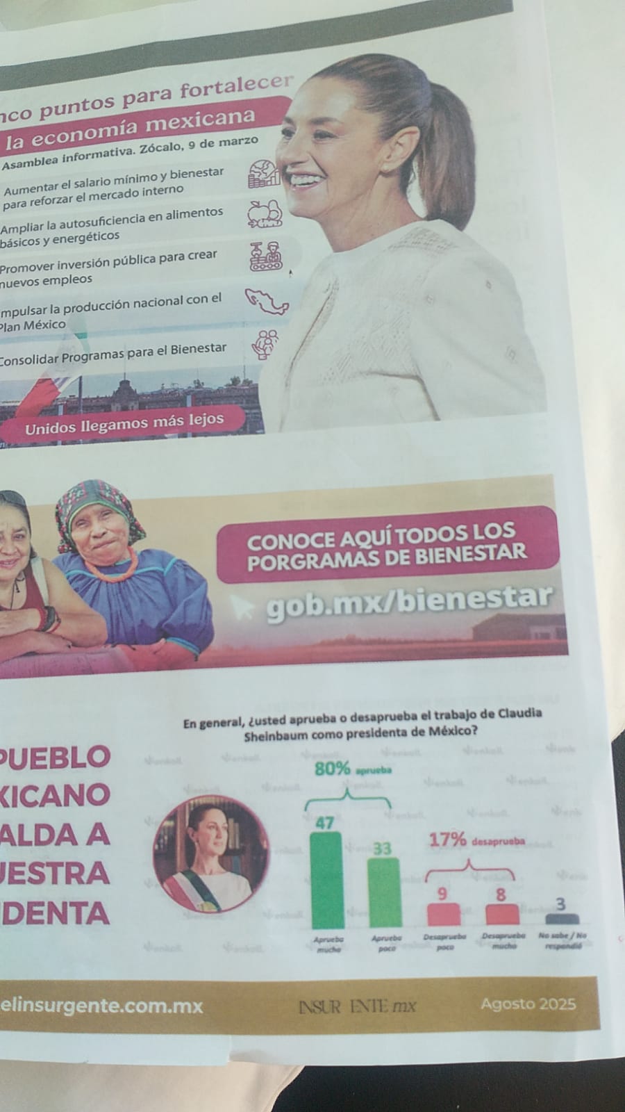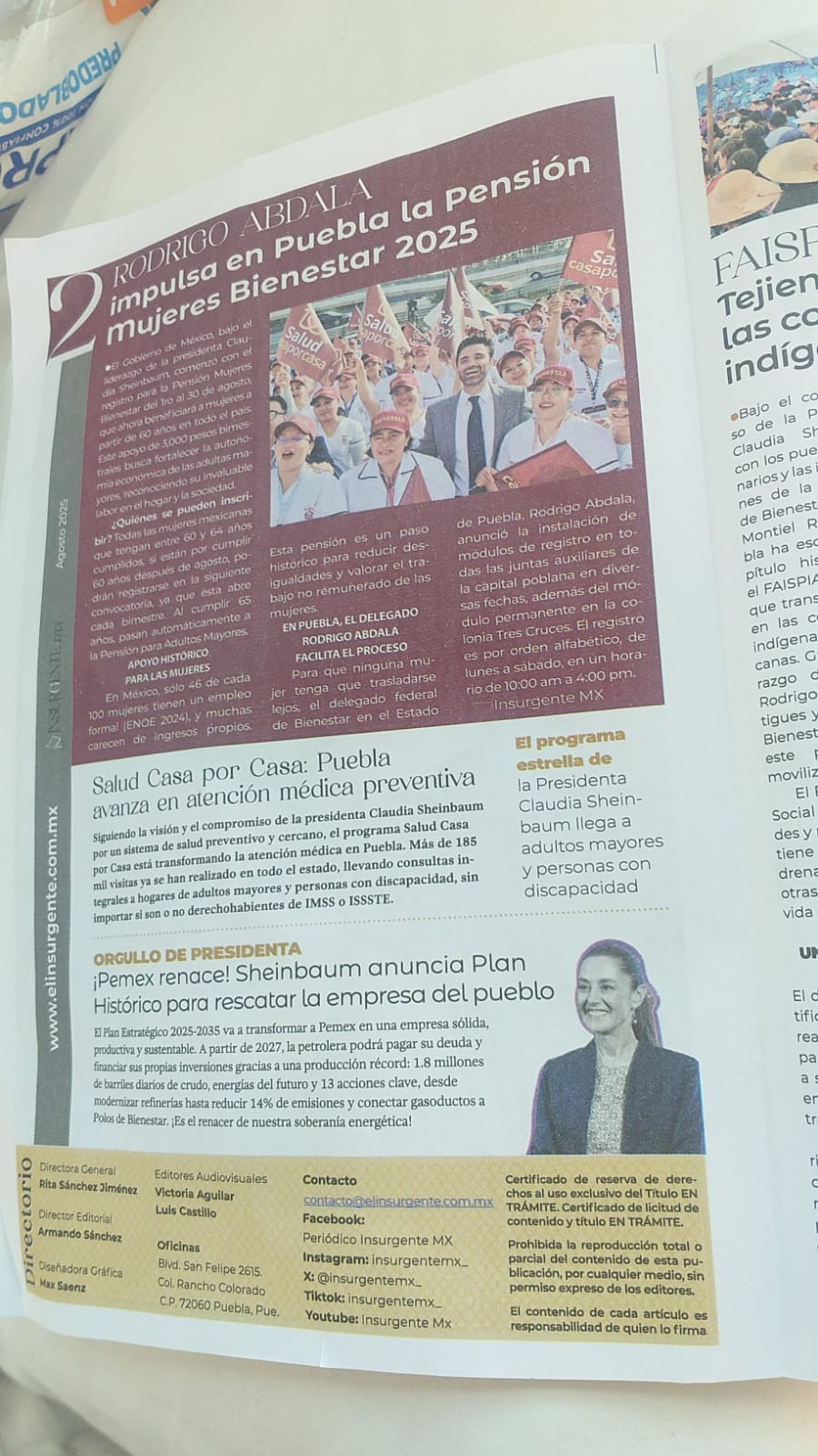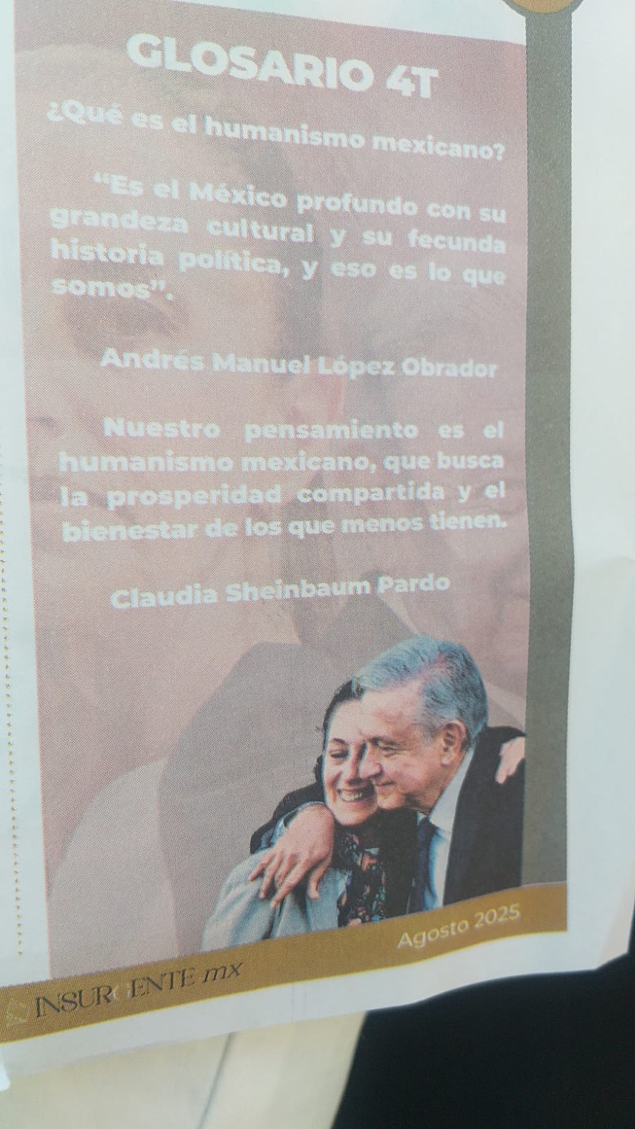 Fechado en agosto de este año, pero distribuido en octubre, de 4 hojas en total, dicho encarte dedica las primeras 3 a ensalzar a este REPRESENTANTE de la federación, aunque también incluyó un presunto glosario de la 4T y hasta podría meter a la presidenta Claudia Sheinbaum en un problema ante el INE y/o el Tribunal Electoral del Poder Judicial de la Federación (Tepjf) al incluirla en una publicación CLARAMENTE PROPAGANDÍSTICA a favor de un personaje político, pese a que Puebla y México todavía no viven –al menos de manera formal ni legal – tiempos electorales.