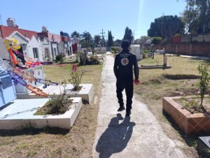 Por su parte, elementos de la Secretaría de Seguridad Ciudadana llevan a cabo patrullajes preventivos y recorridos en el interior y alrededores de los panteones más concurridos, como los ubicados en los Barrios de La Magdalena, Jesús y Santiago Momoxpan; así como en las Juntas Auxiliares de San Matías Cocoyotla, San Diego Cuachayotla, San Sebastián Tepalcatepec, San Juan Tlautla, San Cristóbal Tepontla, San Agustín Calvario, San Gregorio Zacapechpan, Santa María Acuexcomac y San Francisco Cuapan. Todo ello con el propósito de mantener el orden, brindar apoyo a la ciudadanía y asegurar una convivencia tranquila.
