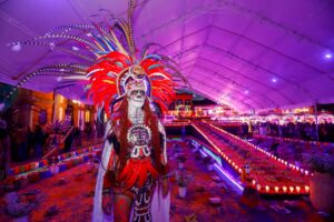El titular del Ejecutivo estatal acompañado por integrantes del gabinete estatal y autoridades municipales, disfrutaron del festival, espectáculo que combinó tradición, cultura, misticismo, agua y fuego, que simboliza la llegada del alma al Mictlán, el lugar donde habitan la paz y el recuerdo.