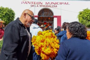 Durante la jornada, las y los cholultecas agradecieron este gesto que fortalece las tradiciones y contribuye al apoyo de la economía familiar. Las flores, símbolo del Día de Muertos, llenaron de color y significado los sepulcros del campo santo, creando un ambiente de respeto y unión.