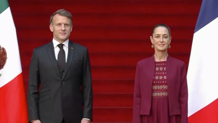 Claudia Sheinbaum recibió al presidente de Francia, Emmanuel Macron, con quien abordará el recibimiento de un códice de una canción europea, así como del acuerdo comercial que se renovará en 2026 con la Unión Europea (UE).