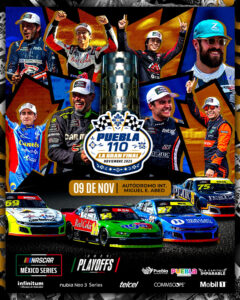 Bajo el nombre de “Puebla 110”, se correrá la 14ª fecha que pone punto final a la actual campaña, siendo 4 los contendientes que pelearán por el título de NASCAR México al igual que en Challenge Series, debiendo tener su mejor carrera del año para poder alzarse con la corona.