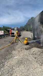 Se reporta vehículo incendiándose sobre la rampa de frenado de la autopista México–Tuxpan, a la altura de Texcapa, en Huauchinango