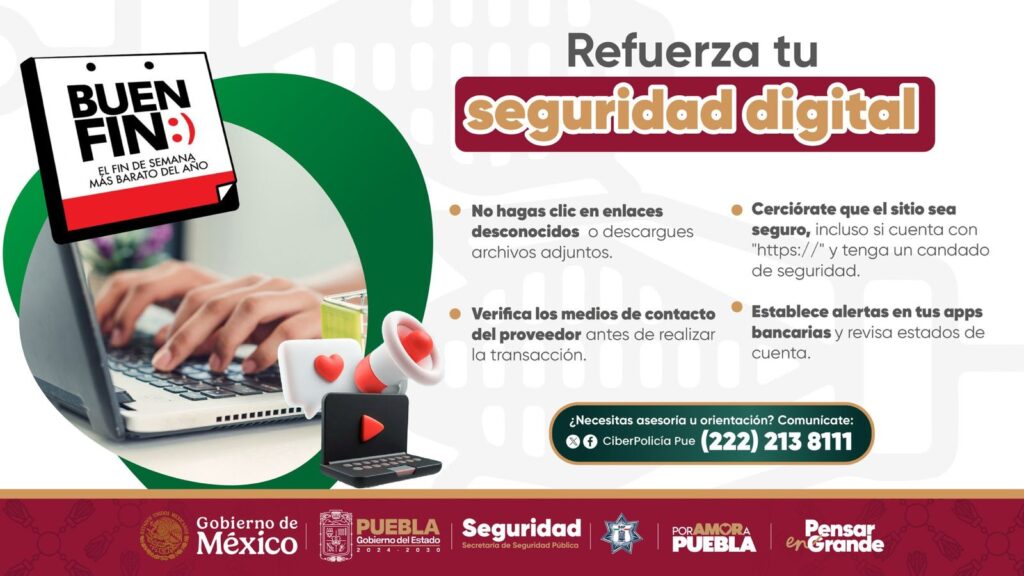 La secretaría de Seguridad Pública de Puebla emitió una serie de recomendaciones, para comprar en línea durante el Buen Fin.