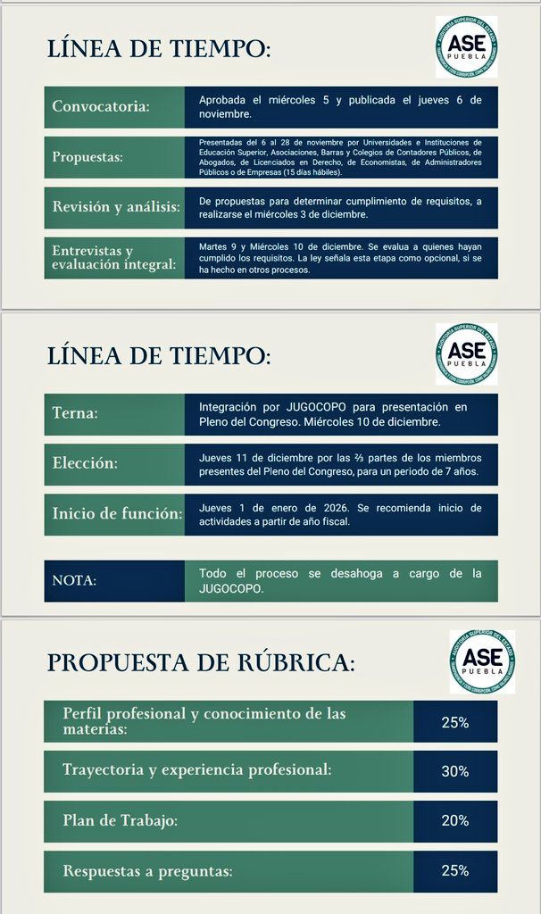 La semana pasada, el Congreso local emitió la convocatoria e inició el proceso de designación del próximo titular de la Auditoría Superior del Estado (ASE), que –de acuerdo a la línea de tiempo- deberá finalizar el próximo 31 de diciembre, para que el 1ro de enero entre en funciones el nuevo auditor.
