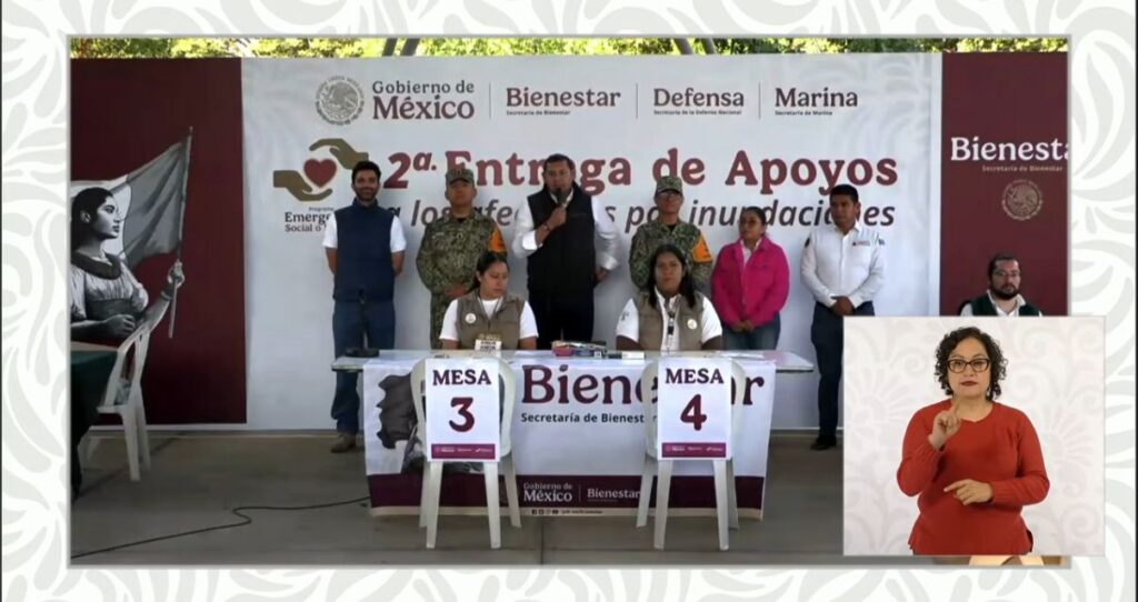 Desde Pantepec, indicó que se estaba llevando a cabo la segunda entrega de apoyos para la reconstrucción de viviendas, locales y agricultores.
