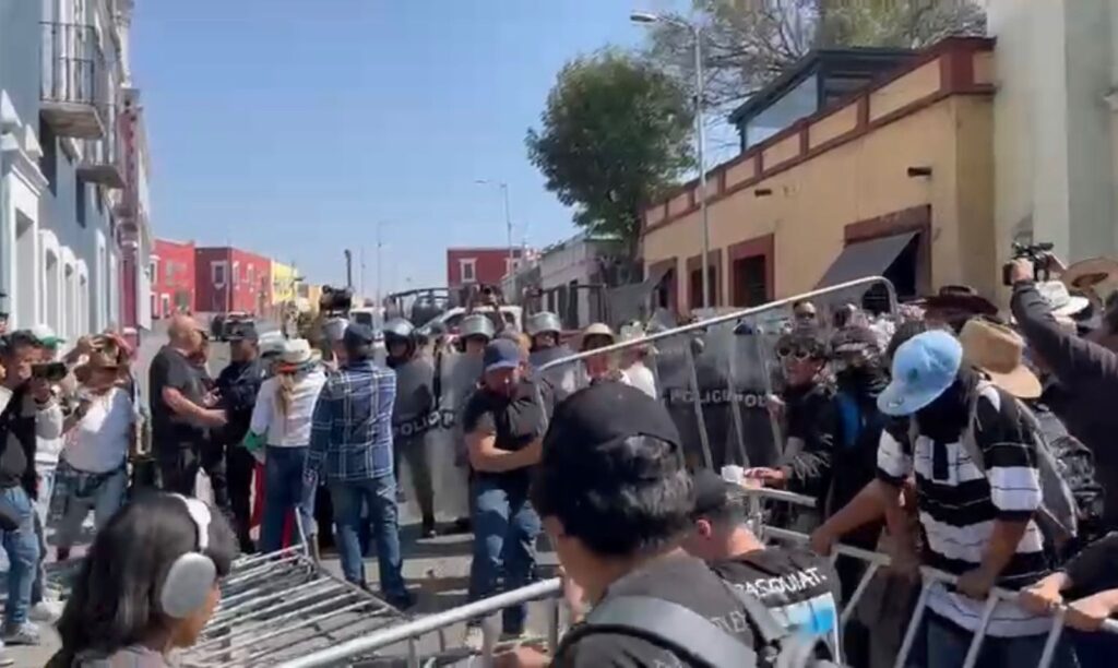 La sede del gobierno estatal estaba protegida por vallas metálicas y uniformados; sin embargo; al arribo de manifestantes comenzaron los disturbios.