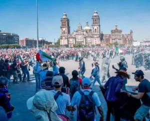 Después habló de que la 4T viene de “una larga lucha. Esta lucha siempre fue pacífica y democrática, y en ese momento había un gobierno autoritario y represivo, así que nuestra lucha nunca utilizó la violencia para poder expresarse. Por eso nosotros no responderemos con represión, pero es nuestra obligación cuidar y proteger a todas y todos, garantizar la paz.”
