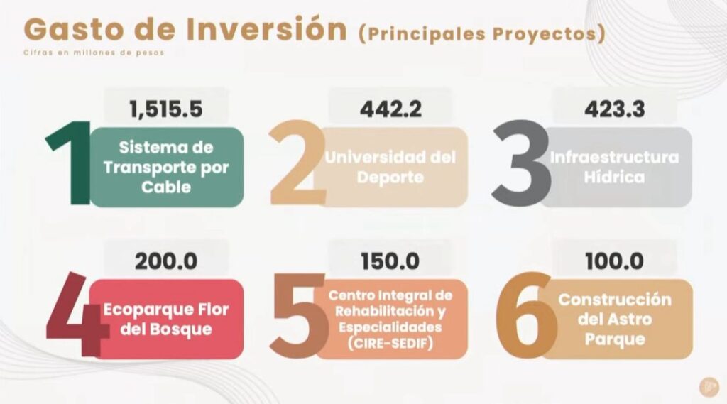 • El Cablebús, cuya inversión será de mil 515.5 millones de pesos.