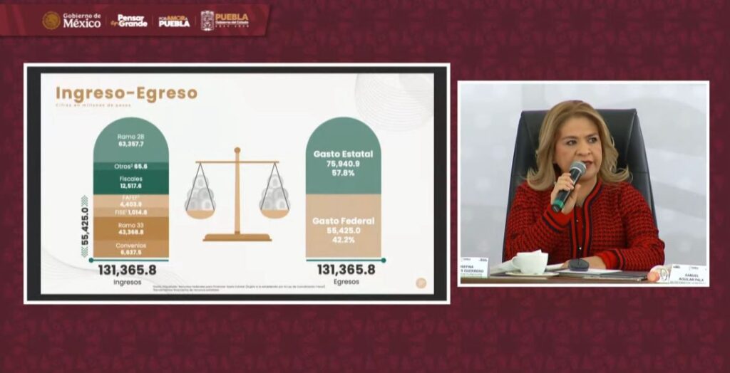 El gobierno de Puebla busca ejercer 131 mil 365.8 millones de pesos en el año 2026 por ingresos estatales, aportaciones federales, convenios y subsidios, informó la titular de la secretaría de Planeación y Finanzas, Josefina Morales.