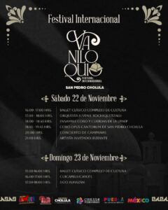 21 de noviembre, 2025. San Pedro Cholula, Pue.- Con la presencia de Alejandra De los Santos, subsecretaria de Promoción Turística del Gobierno del Estado, la presidenta municipal de San Pedro Cholula, Tonantzin Fernández, presentó el Vaniloquio 2025 y el programa de actividades que enmarcarán este tradicional festival.