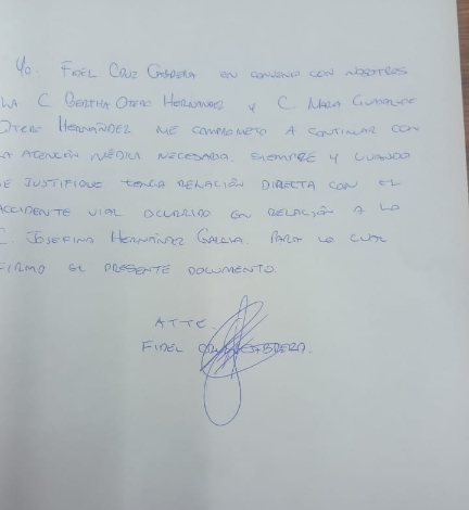Ni la causante del accidente ni el burócrata del hospital general de Huauchinango aceptaron darle a la víctima la atención requerida, tal vez, porque Vialidad Municipal y su agente, Arturo Martínez Córdoba, la dejaron huir e, incluso, la dependencia de Edgar Sánchez y el propio Fidel Cruz habrían presionado a los allegados de doña Josefina, para que aceptaran un “acuerdo” extrajudicial” y no denunciaran a la causante del percance, pese a que no garantizaron el adecuado tratamiento médico de la herida.