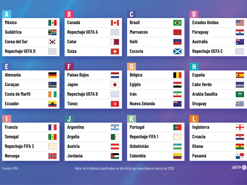 Argentina, defensora del título, quedó encuadrada con Argelia, Austria y Jordania en el Grupo J, mientras que la pentacampeona Brasil jugará frente a Marruecos -semifinalista en 2022-, Haití y Escocia por el Grupo C.