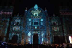 El segundo acto se llevó a cabo a las 20:00 horas en el Atrio de la Catedral de Puebla, donde se presentó el montaje principal ante las personas previamente registradas. Para garantizar la accesibilidad, se instalaron pantallas de alta definición alrededor del Zócalo, permitiendo que miles de asistentes vivieran la experiencia en tiempo real desde distintos puntos del Centro Histórico.