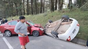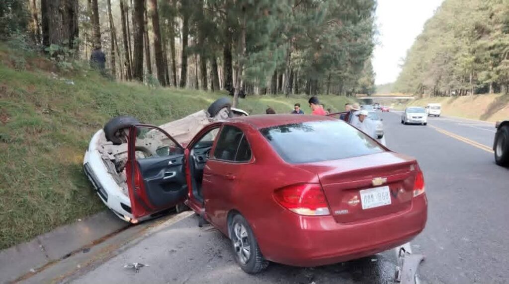 Fuerte accidente entre dos vehículos particulares sobre el kilómetro 124 de la autopista México Tuxpan a altura de Acaxochitlán en el tramo Tejocotal – San Alejo con direccion a Tuxpan.