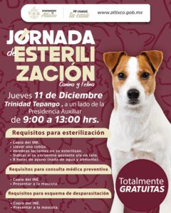 La presidenta de Atlixco, Ariadna Ayala, continúa llevando servicios veterinarios gratuitos a las comunidades mediante jornadas que ofrecerán esterilización canina y felina, consulta preventiva y desparasitación.