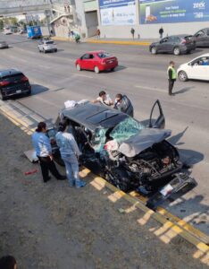 Carambola en la Vía Atlixcáyotl, a la altura de plaza Vía San Ángel, dejó algunas personas lesionadas, graves daños a los autos y una mujer fallecida.