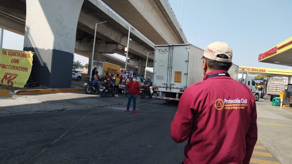 El Gobierno de Puebla, a través de la Coordinación General de Protección Civil y Gestión del Riesgo de Desastres, mantiene personal desplegado en la Autopista México-Puebla en el tramo que comprende el bajo puente, para brindar atención médica e hidratación.