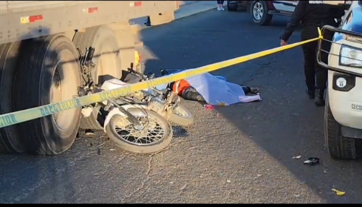 La víctima perdió la vida de manera instantánea al estamparse contra la caja de un tráiler estacionado a un costado de la vía.