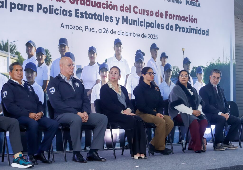 AMOZOC, Pue.- Con la visión de ampliar la presencia territorial, fortalecer la prevención del delito y mejorar la atención ciudadana, durante 2025, el Gobierno del Estado de Puebla, a través de la Universidad de las Ciencias Policiales y de la Seguridad, graduó a 303 policías estatales y municipales de proximidad.