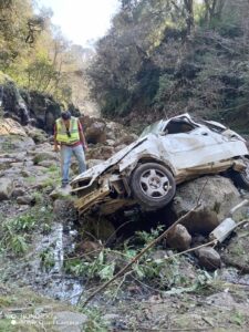 El vehículo quedó completamente destrozado tras caer más de 50 metros en la parte más alta del Puente.