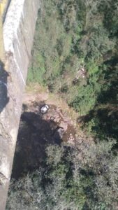 Un vehículo se salió de la carpeta asfáltica y cayó al fondo.