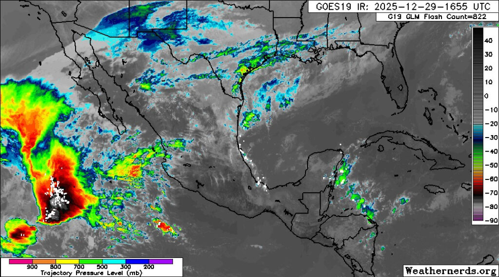 Asimismo, la masa de aire ártico asociada al frente provocará un descenso de la temperatura en las sierras poblanas, zonas altas y aledañas al Pico de Orizaba, Popocatépetl e Iztaccíhuatl.
