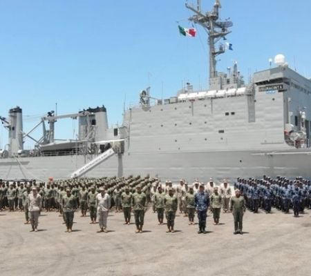 Ese mismo mes solicitó el permiso para el ingreso de una delegación de tropas francesas conformada por 32 elementos (nueve tripulantes y 23 militares) para el “Adiestramiento de Operaciones en Selva” y la “Ceremonia Conmemorativa a la Batalla de Camarón”, quienes permanecieron en México del 12 de abril al 7 de mayo de 2025.