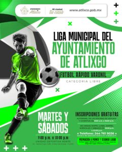El ayuntamiento de Atlixco, a través de la Jefatura de Deporte y Juventud, informó sobre la realización de las Ligas Municipales de Futbol Rápido, en sus ramas varonil y femenil, las cuales se llevarán a cabo en la Unidad Deportiva Norte.