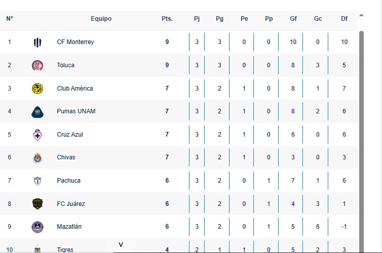 Tampoco han perdido los conjuntos de América, Cruz Azul, Pumas y Chivas; las Águilas golearon 6-0 a Necaxa, mientras que Universidad Nacional hizo lo propio con Mazatlán FC con un 3-0 contundente.