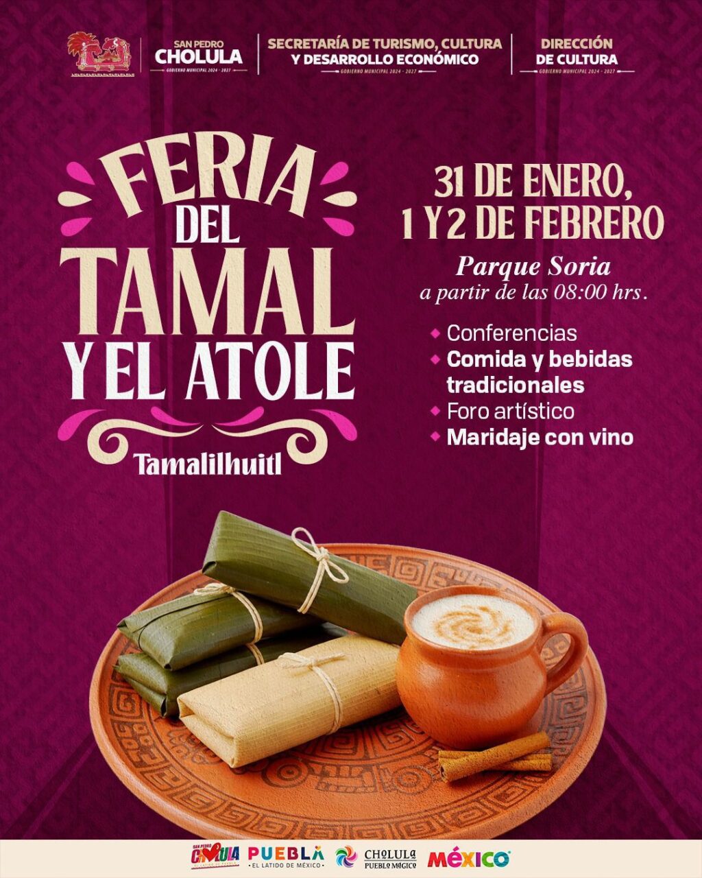 Autoridades municipales de San Pedro Cholula anunciaron la Feria del Tamal y el Atole 2026 del 31 de enero al 2 de febrero.