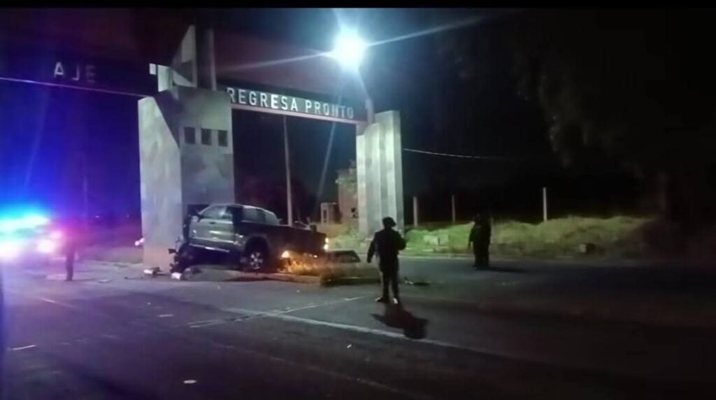 Vive para contarla al chocar con su camioneta contra pórtico de entrada en Acajete.