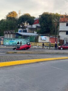 Presuntamente, habría chocado contra el camellón, ocasionó que terminara con las cuatro llantas hacia arriba.