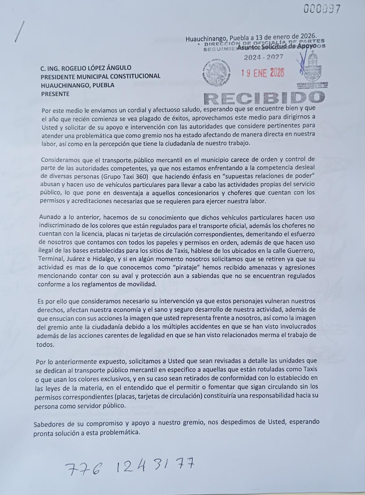 El 19 de enero, pero de 2026, los concesionarios volvieron a solicitar la intervención de la SMT ante la presunta competencia desleal del llamado Grupo Taxi 360, que ofrece el servicio amparado en “relaciones de poder”; es decir, corrupción, sin que se haya metido orden en poco menos de un año, pese a que esta piratería afecta severamente sus ingresos.