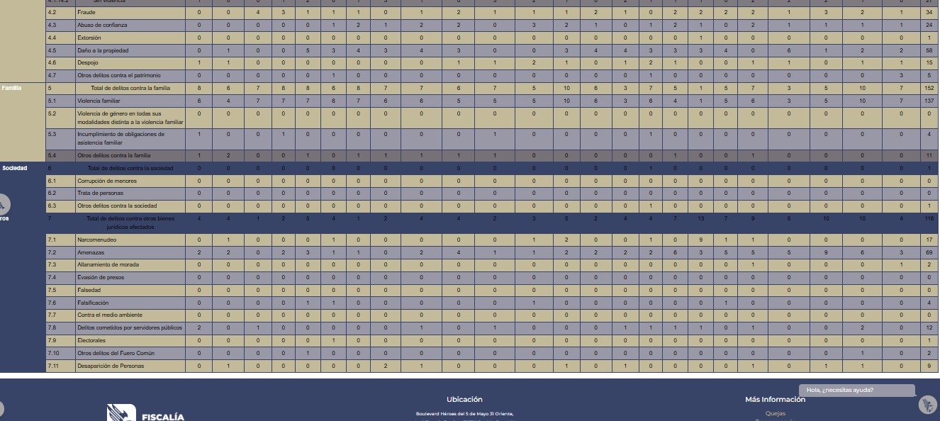 En ese lapso también se duplicaron los homicidios dolosos: FGE registro dos en 2024 y cuatro en 2025. Los ataques sexuales (violaciones simples, equiparadas, abuso, acoso, hostigamiento, etc) pasaron de 18 a 29 casos y los delitos contra el patrimonio de la gente se incrementaron de 193 a 206.