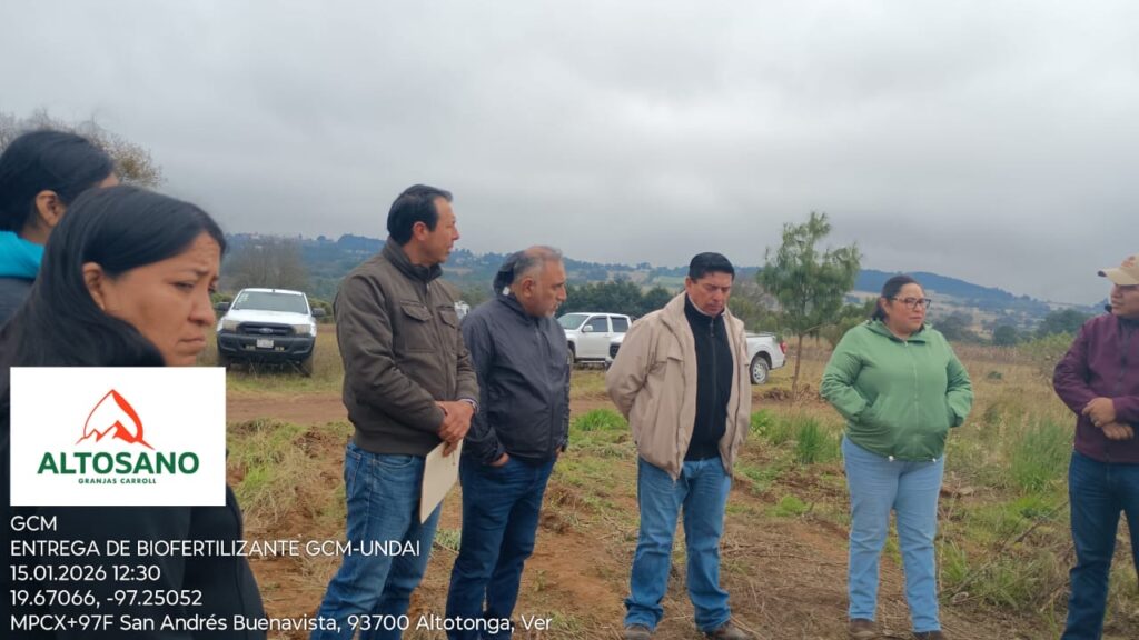 Enero 26 de 2026.- Productores de San Isidro El Rincón del municipio de Atzalan recibieron de Altosano Granjas Carroll más de 100 toneladas de biofertilizante orgánico con los tendrán ahorros sustanciales, tendrán una producción mas sana y sustentable, además de la orientación y seguimiento de parte de las autoridades estatales.