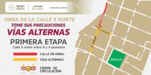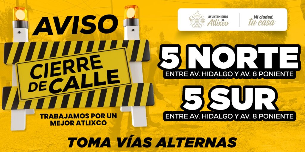 Ayuntamiento de Atlixco anuncia inicio de obra y cierre de vialidad en la calle 5 Norte.