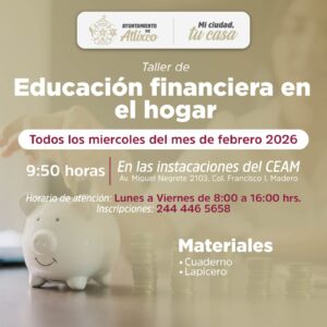 Además, todos los miércoles de febrero se ofrecerá el Taller de Educación Financiera en el Hogar, enfocado en la administración responsable de los recursos familiares.