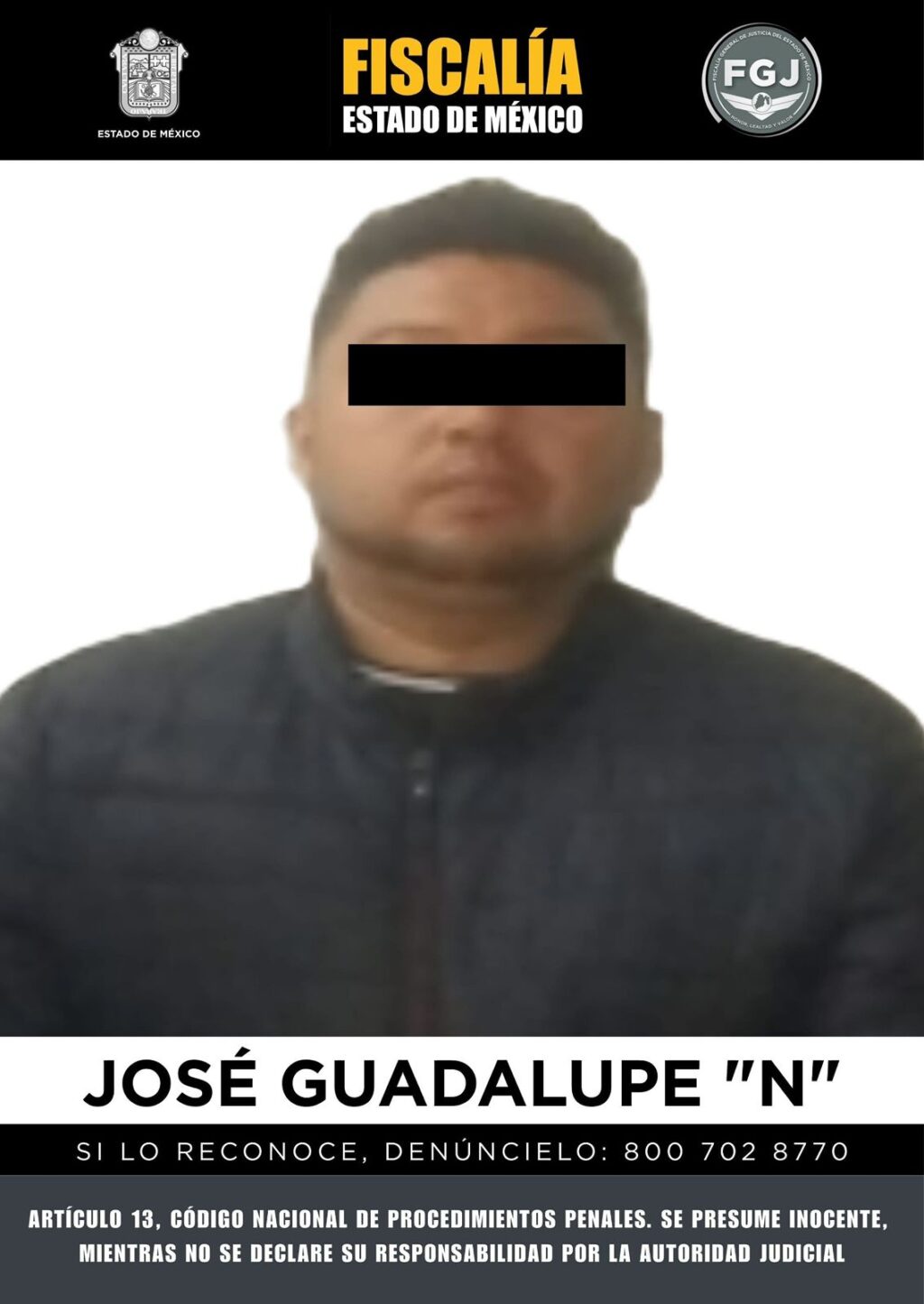 Ecatepec, Méx.- Por su probable responsabilidad en el delito de feminicidio en agravio de su cónyuge, la Fiscalía General de Justicia del Estado de México obtuvo de la Autoridad Judicial, la vinculación a proceso de un sujeto identificado como José Guadalupe “N”.