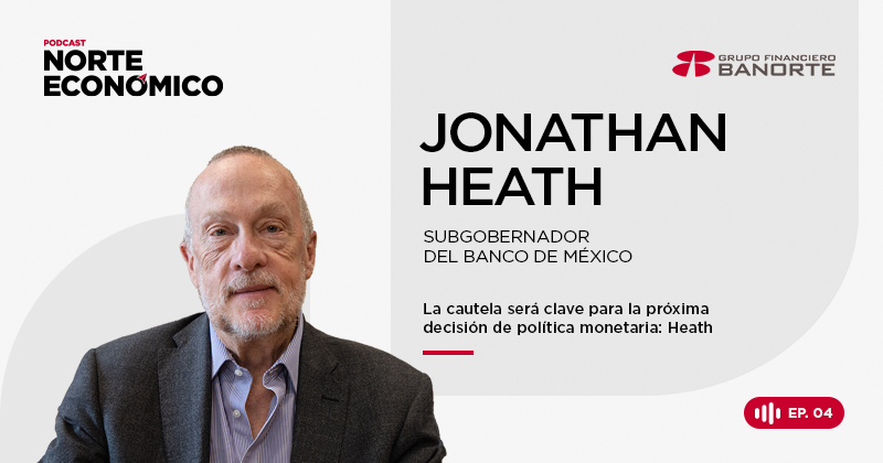 Durante su participación en Norte Económico, el podcast de Grupo Financiero Banorte, Heath explicó que la guía futura del Banco de México permite considerar una baja en la tasa de referencia siempre que la inflación se comporte conforme a lo anticipado. “Si la inflación va en línea con lo que estamos anticipando, o sea, muy en función de los datos, se pudiera dar una nueva baja en la tasa de la política monetaria tan temprano como marzo”, señaló.