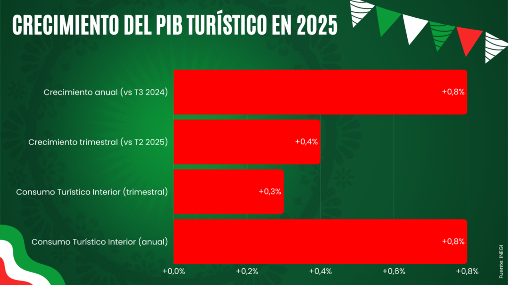 La secretaria de Turismo, Josefina Rodríguez Zamora, destacó que nunca antes habían llegado tantos visitantes en un solo año y subrayó que el crecimiento se traduce en mayor derrama económica, generación de empleo y bienestar para las comunidades. De hecho, los Indicadores Trimestrales de la Actividad Turística muestran que el PIB turístico creció 0,8 % interanual en el tercer trimestre de 2025 y 0,4 % frente al trimestre anterior, mientras que el consumo turístico interior avanzó 0,3 % trimestral y 0,8 % en comparación anual.
