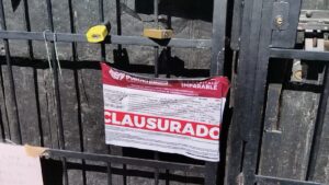En la puerta del negocio existen dos sellos de clausura, uno no es visible, debido a que se colocó una cartulina con mensajes.