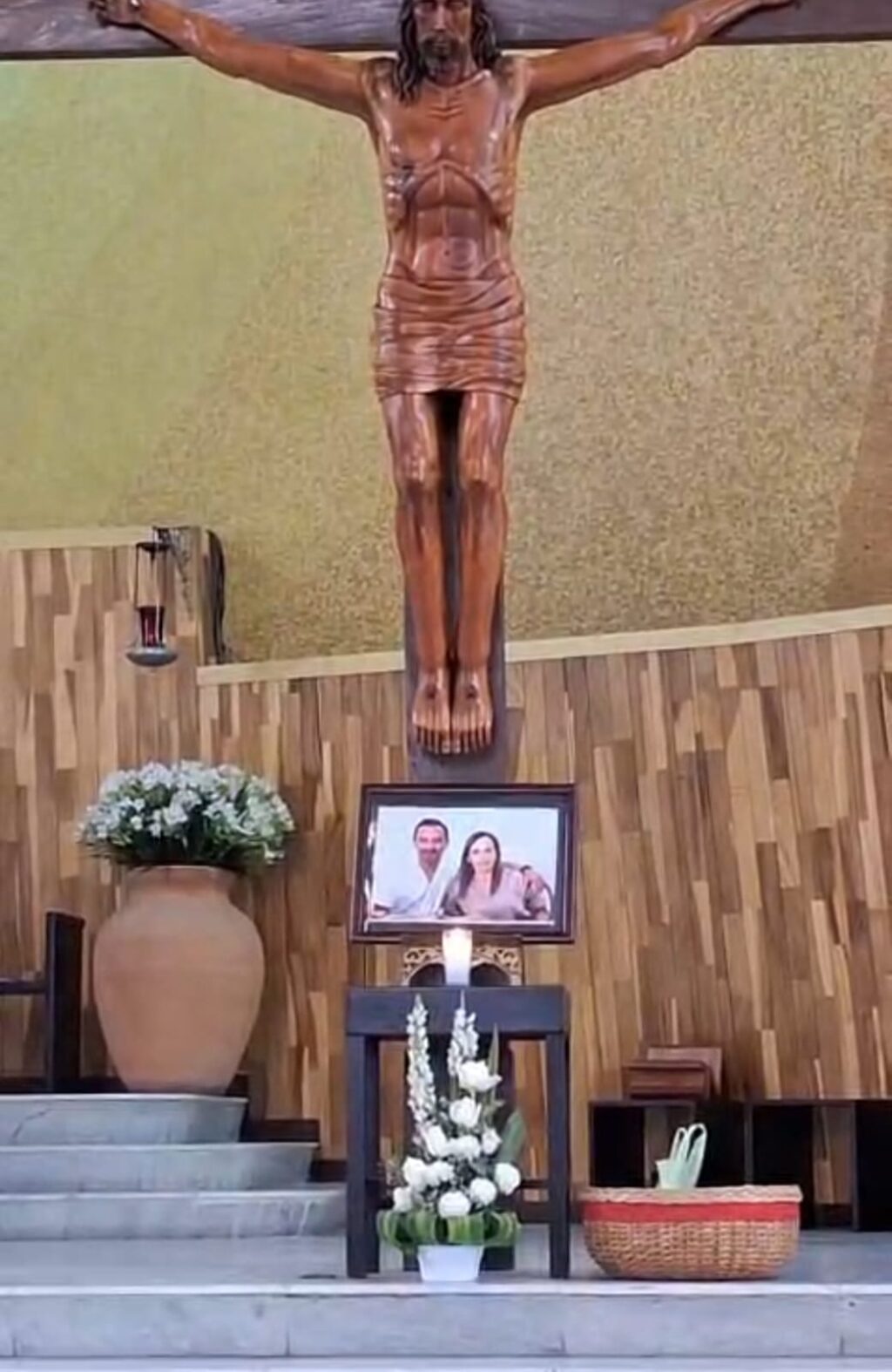 Durante la homilía, el sacerdote colocó frente al altar una fotografía de la pareja y expresó un mensaje de despedida.
