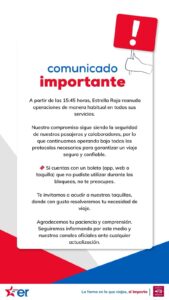 Por otro lado, Estrella Roja confirmó la reanudación de sus servicios en todo el estado.