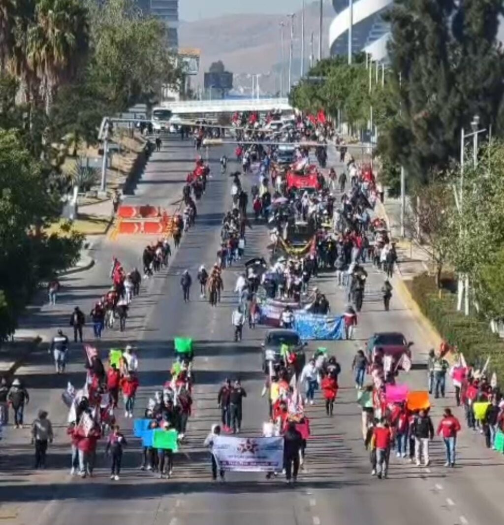 El contingente de aproximadamente 300 personas ya se encuentra frente a las instalaciones del CIS Angelópolis, que permanecen resguardadas por granaderos.