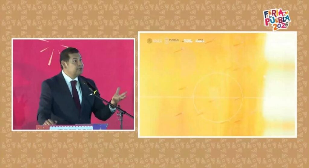 Fue desde la explanada del CIS Angelópolis, donde el gobernador Alejandro Armenta presentó la feria acompañado de fuegos pirotécnicos, y garantiza la seguridad para sus visitantes.