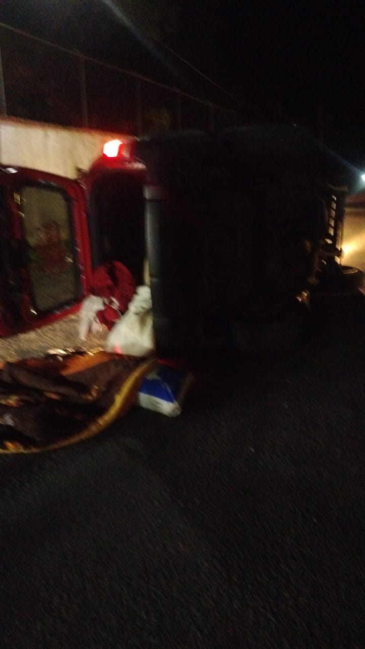 Reportan un vehículo volcado sobre la carretera estatal Huauchinango – Naupan a la altura de Michuca.